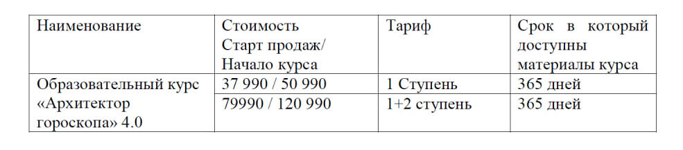 4.3. Стоимость оказываемых услуг указана в Приложении 1. Исполнитель имеет право менять стоимость курсов по собственному усмотрению и публиковать изменения в приложении к настоящему договору.